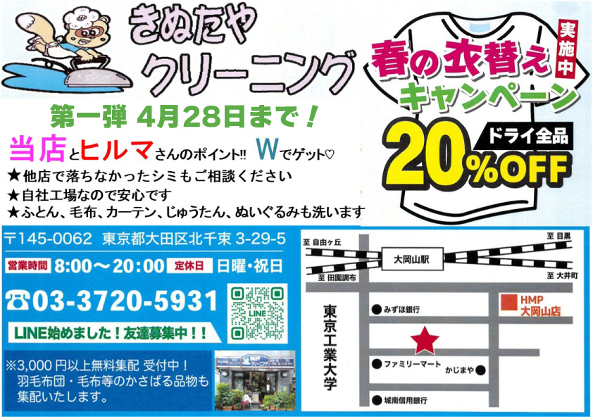 2025.04.09 ・・・・ 【4/26まで】春の衣替えセール実施中!ドライ&ダウン全品20%OFF!<終了>